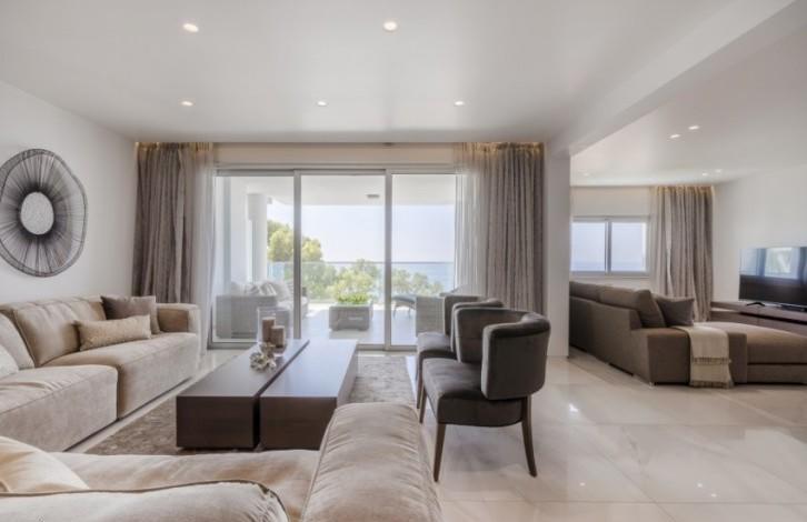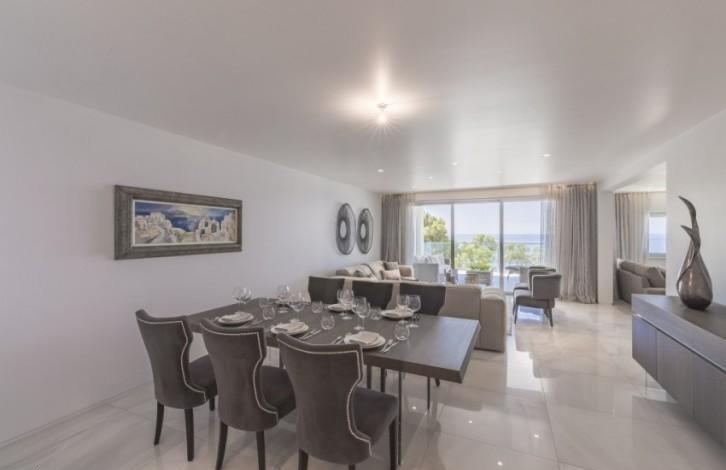 Luxury 4 bedroom apartment on the beach. Characteristics: spacious open-plan kitchen with living room, 4 bedrooms, 2 bathrooms and guest toilet, the apartment is fully furnished with new expensive furniture and the kitchen is fully equipped with new high-quality home appliances, VRV air conditioners, panoramic sea views. The complex has a swimming pool and a sports hall.