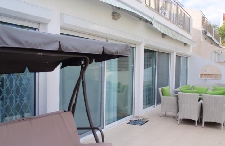 Three-bedroom apartment with a garden, located in a complex with a swimming pool, just 200 meters from the beach next to Cafe Pascucci. The large veranda offers views of the private garden and pool. The apartments have Italian lockers and kitchens of the highest class.