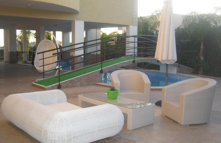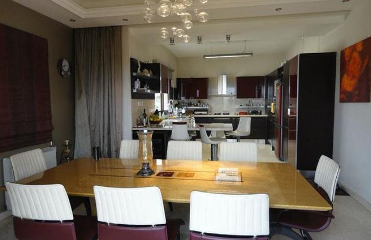 Luxury 5-bedroom villa is located in a quiet residential area of Panthea. Specifications: fully furnished, air conditioning in all rooms, central heating, fireplace, whirlpool, laminate flooring in the bedrooms, private swimming pool, covered parking.