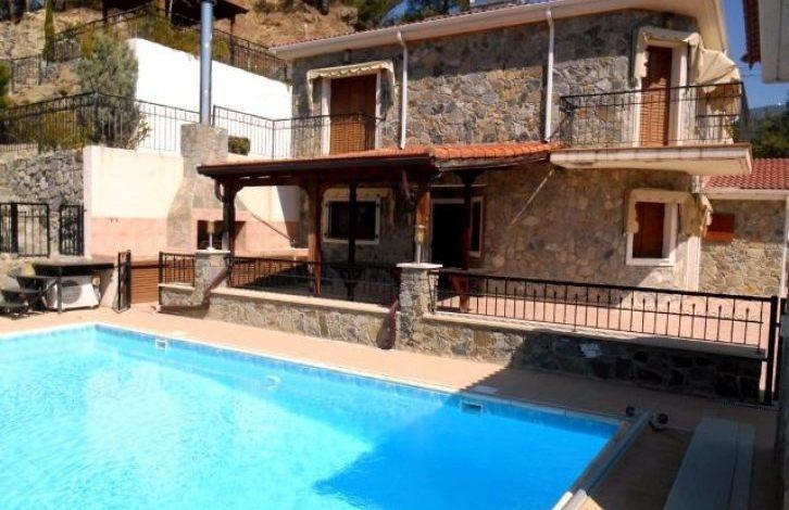 Wonderful 5-bedroom villa with a separate guest house, situated on a large plot in Moniatis area near the Troodos Mountains. The main house includes a spacious living room with fireplace, dining area, 4 bedrooms on the second floor has 1 bedroom on the ground floor, bathroom, kitchen, balcony and a large veranda. The guest house consists of a bedroom and bathroom with toilet. The main house is furnished, it is equipped with air conditioning and central heating, sauna, whirlpool, lift, barbecue area, swimming pool, gazebo and landscaped grounds. Quiet residential area.