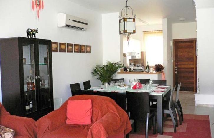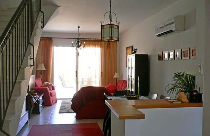 This spacious furnished two-bedroom townhouse is located in a popular complex with a large communal pool and landscaped grounds in the traditional Cypriot village of Peya. The covered veranda offers a magnificent view of the mountains, the pool and the Mediterranean Sea. On the first level there is a living room and an open plan kitchen, a guest WC. On the second level there are two bedrooms with built-in air-conditioners, wardrobes. Installed solar panels. Parking place in the complex. The title to the property is formalized.