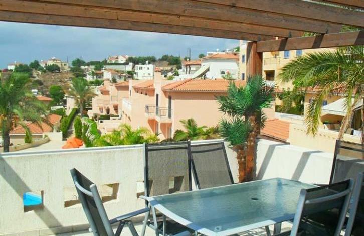 Magnificent two bedroom townhouse with panoramic views in Peyia! Conveniently designed complex with a large communal pool and well maintained area, located in a quiet quarter. On the first level there is a kitchen and an open plan living room, a guest bathroom and a patio. On the second level there are two bedrooms with fitted wardrobes, air conditioning.