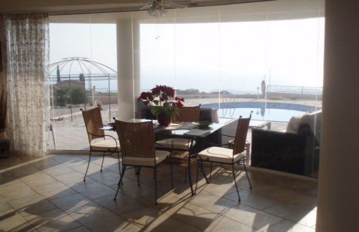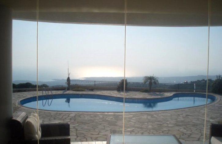 An exquisite four bedroom detached villa for sale located on the Akoursos hills above Coral bay. This is a truly exclusive fully furnished property with spectacular unobstructed sea views of the entire Pafos district. Peyia village and Coral Bay is only a short distance away and Pafos town is a mere fifteen minutes away. This property has title deeds. The price of this property has been reduced from € 1,250,000. Set on a spacious plot, this property has its own private swimming pool. The gardens have an irrigation system installed. The property is fully air conditioned, has central heating, four en suite bathrooms and much much more. The surrounding greenery and tranquil location in which this property is situated offers an excellent opportunity for permanent residency or a holiday home away from the hustle bustle of large cities and cities.