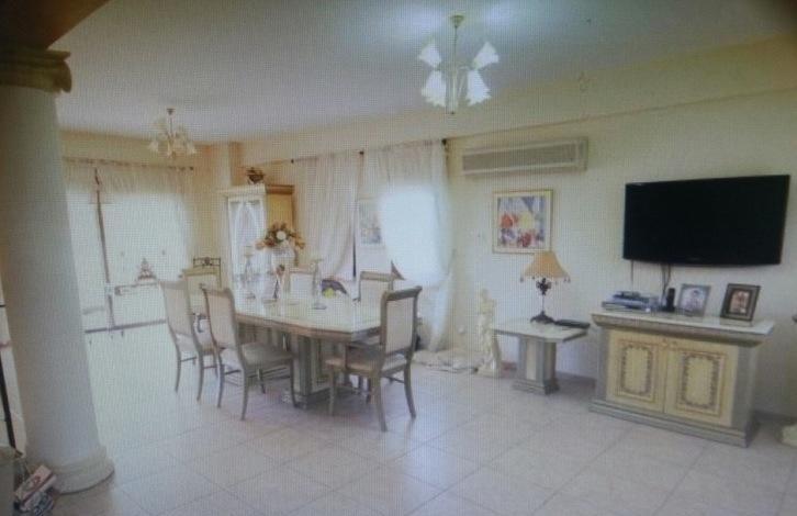 This spacious house with a swimming pool is located in Dhekelia road, Larnaca. Just 300 meters from the beach. The house is very spacious, bright and cozy. Very suitable for large families with children. As soon as you enter the house you realize how much space it offers - at the ground floor there is a huge room with a kitchen, a guest toilet. Large steps lead you upstairs to the family, a bathroom and three bedrooms.