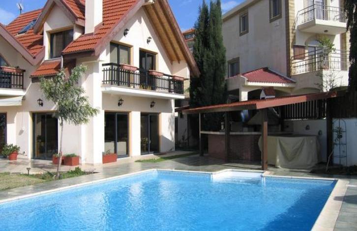 Luxury 5 bedroom villa for sale in the exclusive area Panthea. Covered area is 428 square meters, land 695 square meters. Large living room, pantry, 4 toilets, an attic, a large garden and a private swimming pool, there is room for the maid. The villa is sold fully furnished, with fitted kitchen and all appliances, air conditioning, central heating.