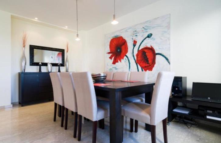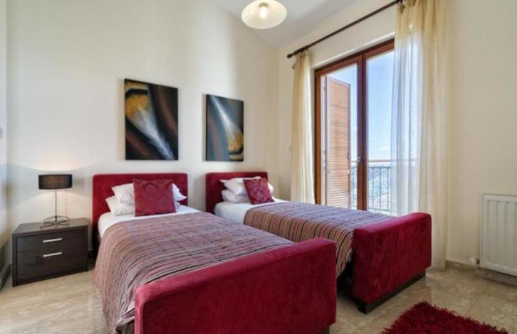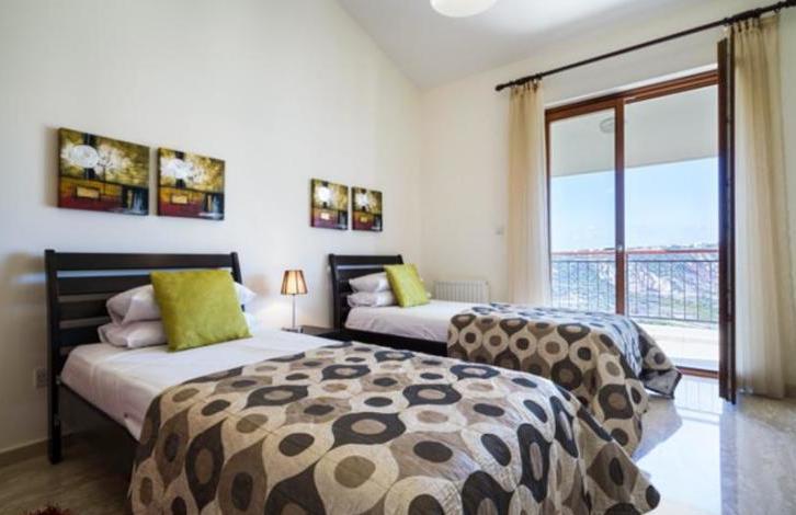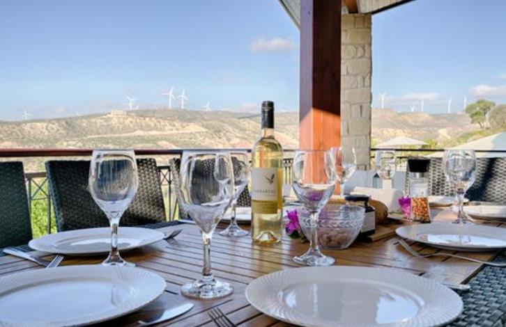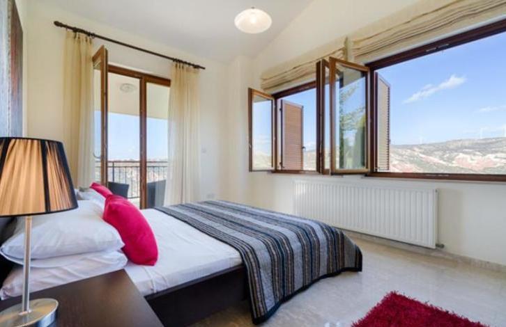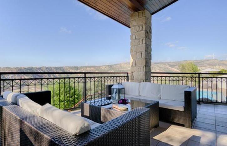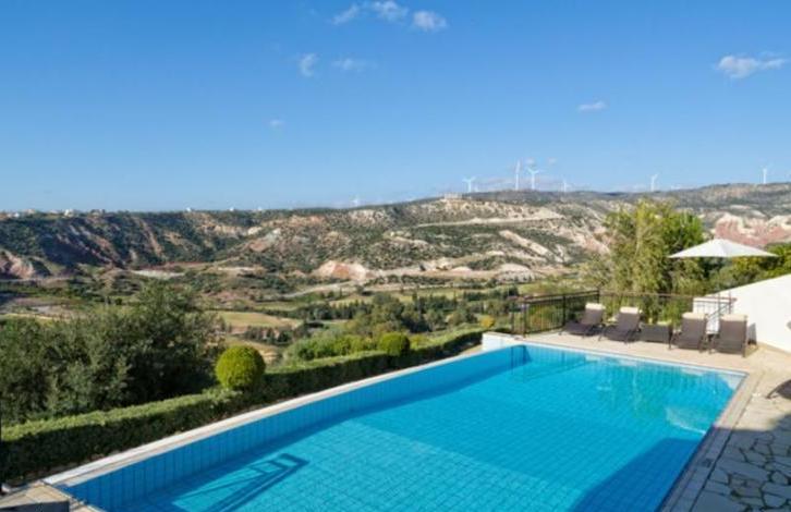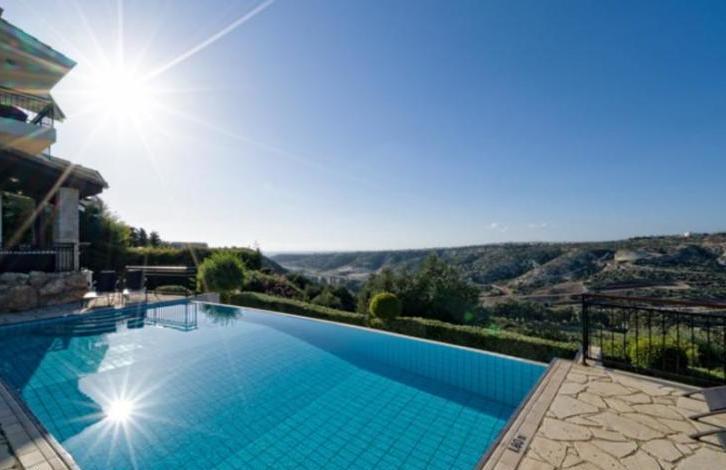 Villa Pyla is a stunning, spacious villa close to all the resort facilities with 4 ensuite bedrooms, heated infinity edge pool and spectacular views directly over Secret Valley golf course and on towards the Mediterranean Sea. The property is situated in a quiet cul-de sac on the Western Plateau, in close proximity to the 17th tee of Aphrodite Hills Golf Course. The accommodation is arranged on three floors and features a large, open plan, split level living and dining area with vaulted \'cathedral\' ceiling. Interiors have been interior designed to a very high standard, featuring marble staircases and there is a small cinema room on the lower ground floor. There are stunning golf course and sunset views beyond from the spacious terraces and balconies. This is a wonderful opportunity to acquire a large family home close to the Aphrodite Hills Village Square. GUARANTEED RENTAL OFFER AVAILABLE!Spacious villa close to all the resort facilitiesFull central heating and pool heating - Good all year roundSpectacular Golf and Mediterranean sea viewsLarge, spacious and modern interiors15 minute stroll from resort facilities4 beds with 4 en-suitesAir-conditioned throughoutQuiet locationTitle Deeds