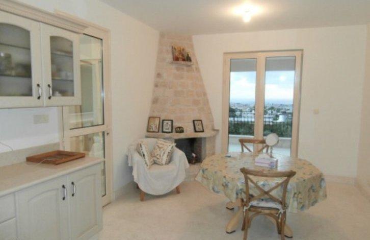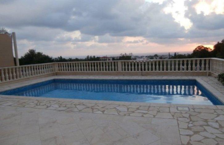 Modern, luxurious and spacious 4 bedroom 4 bath house in the area in Petridia Emba, just 5 minutes drive to Paphos centre. The house is situated not far from Emba gymnasium elevated position with excellent sea and mountain views. The house is on three levels and has two entrances from the front or from the rear. With the front of the house is a beautiful garden. On the ground floor is a large living room with fireplace and guest toilet. Separate kitchen/dining room very spacious. The veranda is large with views of Paphos town and the sea. On the second floor there are 3 double bedrooms all with ensuite bathrooms and verandas with panoramic sea and mountain views. The basement houses a Laundry and a Studio apartment with a private bathroom, a utility room, pump for pool, double covered Parking and a barbecue area, and large warehouses. The pool is located on the ground floor is large and private.