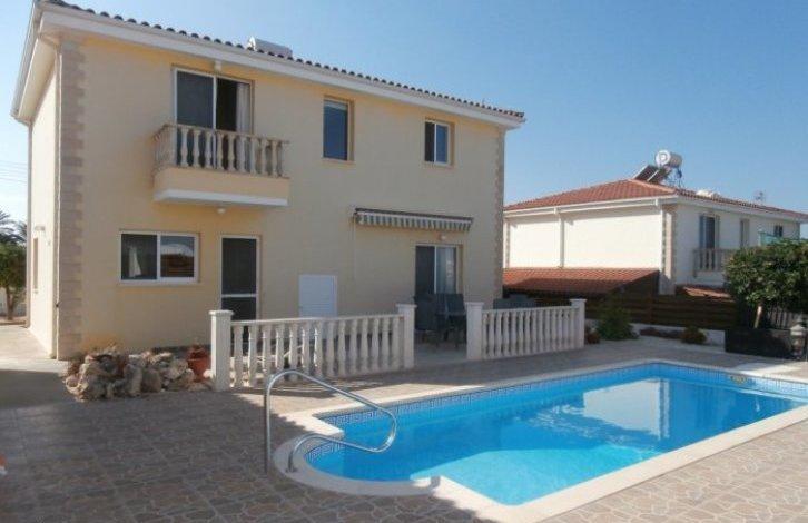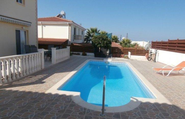This is a lovely three bedroom Villa is located in a quiet cul de SAC in the popular village of Tala. The village square with taverns and restaurants is just 1 km away and the famous monastery of St. Neophytos. Tala is located around 250 metres above sea level and has great sea views and a healthy climate, with cool breeze in the hot summer months. Paphos and the famous coral Bay resort with its sandy beaches are just a short drive from the Villa. The building has a nice garden from the front, partly paved with stone. On the ground floor there is a spacious living room, guest toilet and a study room in the corner of the living room. The kitchen is large and private, close to dining area. From the kitchen and lounge there is access to the garden and pool. The garden requires no maintenance. On the second floor there are three double bedrooms, the master bedroom has its own shower room and the other two share a common bathroom. One of the bedrooms has a large balcony with a beautiful view of the sea and the mountains. Price includes good quality fixtures and fittings and some furniture. Titles.