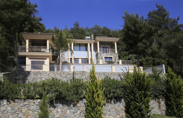 Classic Magnificent villa placed in the woods with unobstructed views of the mountains of Cyprus. Excellent quality materials such as stone and wood, modern technologies and good design makes this property one of a best in the area. Beautiful garden, big overflow swimming pool, covered patio and pool area are very inviting. Office, billiard room, 4 bedrooms, 3 bathrooms, guest toilet, 2 living rooms, dining room, wooden kitchen, garage, laundry room, extra kitchen.