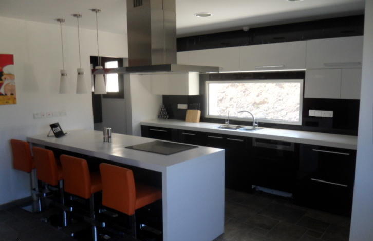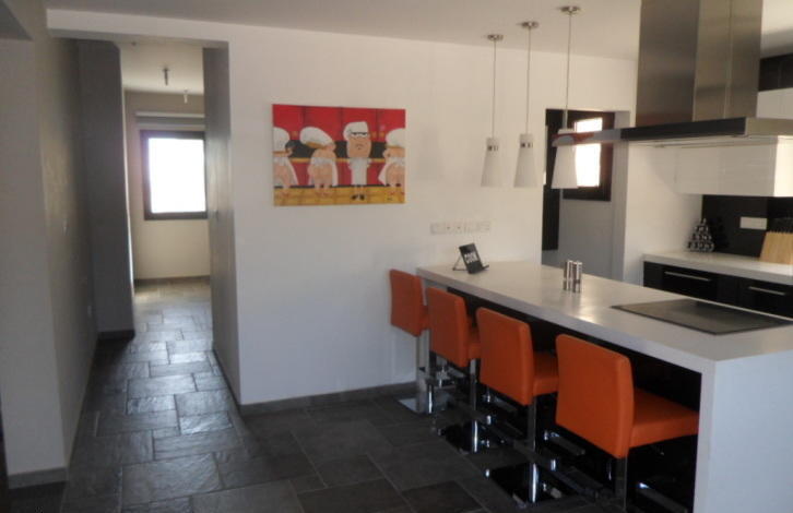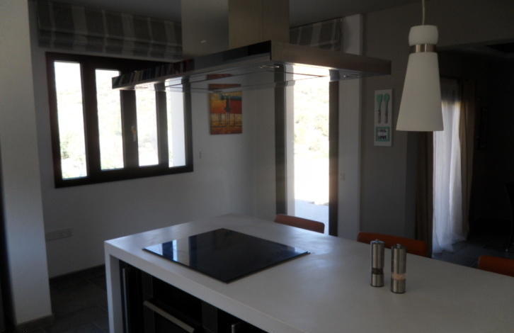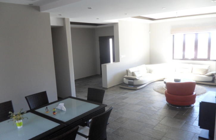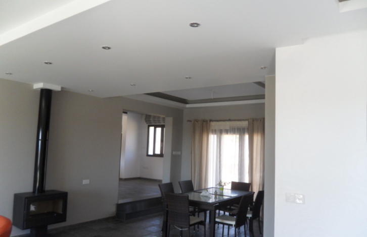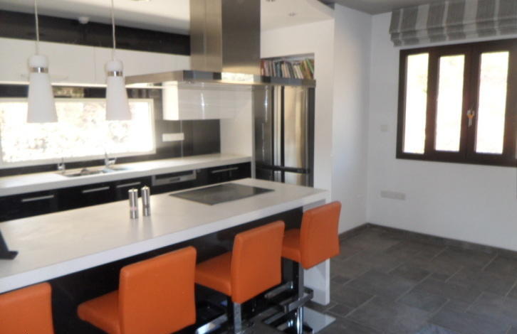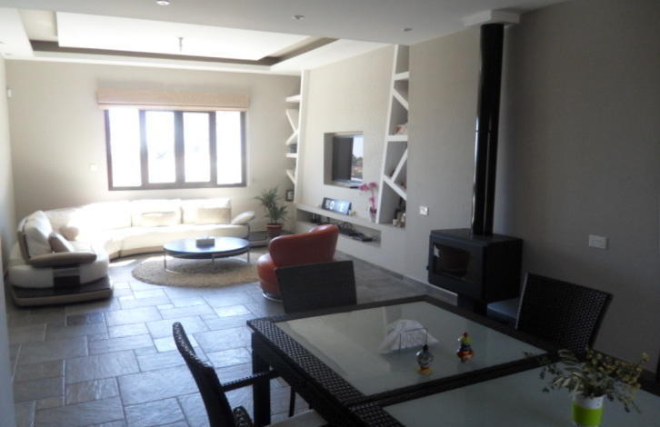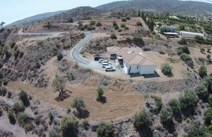 Bungalow for sale, 249m2, on agricultural land 6012m2, with 4 bedrooms, 3 w/c, pantry, laundry room, attic storage, and covered garage. It has provision for a/c and underfloor heating, it has a modern wood stove, thermal insulation in outer walls and the roof, hidden lighting, spot lights, plasterboards and wallpaper. A part of the front wall is covered with an exquisite natural stone that blends in with the natural colours of the area. There is a private asphalted road that leads to the house from the main road, its right next to a river and it has open horizon views to the mountains and sea.