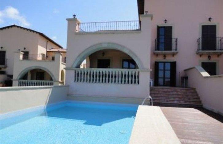 Superior three - bedroom Villa located in popular Golf resort – Aphrodites hills, which is situated fairly close to cities such as Paphos and Limassol and the highway between them. The property is situated on a private plot adjacent to a green area and a private swimming pool surrounded by a garden with Seating area and wonderful views of the valley and the sea. The Villa is fully air-conditioned provision for Central heating, shutters on the Windows. The bedrooms have parquet floors, built-in wardrobes. In one of the bedrooms in the tub with a bath - Jacuzzi. All finish to a high standard. Situated in this fantastic resort area, this Villa will attract the attention of those who want to play Golf in two steps from the house, as well as to enjoy 11 tennis courts and a communal pool. All services are only in walking distance. The whole area is surrounded by olive trees, carob trees with stunning sea views. Great location near the sea.