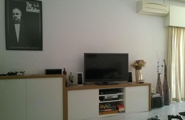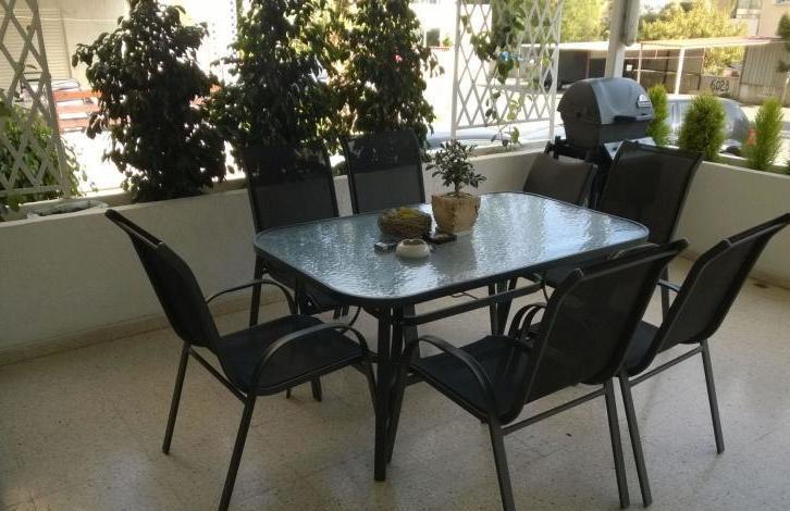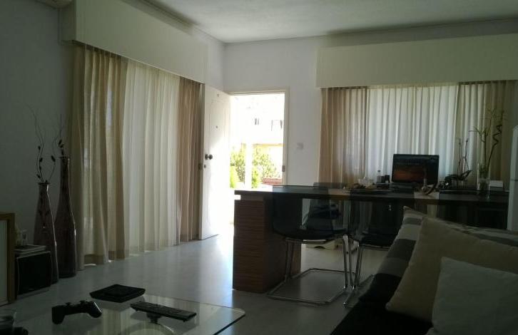 A modern, spacious 3 (plus 1 extra bedroom or storage room) bedroom ground floor apartment of 170 square meters, fully furnished and equipped. It has 3 (or 4) big bedrooms, 2 bathrooms, kitchen with granite tops, covered veranda of 25 square meters, extra storage area. Each room is fully air-conditioned with parquet floors and big windows. The flat is located in Mesa Geitonia, 5 minutes from the beach.