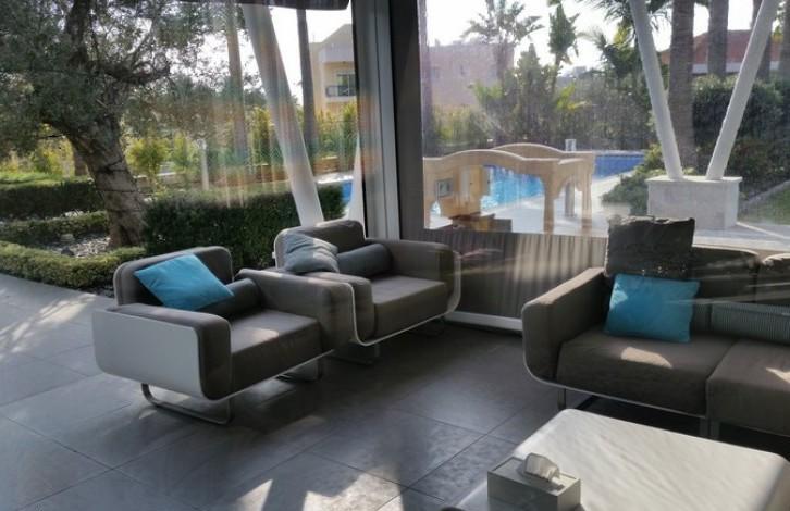 A Unique luxury modern design villa with 5 big bedrooms all of them en suite Located only 400m from the beach in a gated complex, Villa has 1100m2 covered area and 1350m2 of plot Central heating - vrv air conditioning system -smart house system Swimming pool - sauna room - cinema room - big gardens Sea views from the rooms - BBQ and bar area - double covered parking The villa is fully furnished and equipped with designed units especially for the villa