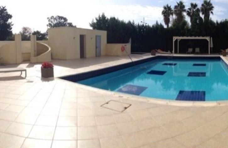 The price is reduced from 600 000 to 450 000 euros !!! The luxury apartment in the Marathon complex with 2 bedrooms is located in Germasoye, opposite the beach. The living area is 129 sq. m., two-level. On the ground floor there is a garden of 60 sq. m. The apartment is fully furnished with Italian furniture. Fully equipped modern kitchen, air conditioning, guest toilet, private parking and pantry. The complex has a large swimming pool and a gym. There is a title.