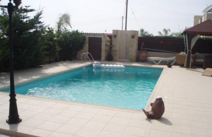 In good condition 3 bedroom Villa located in the popular village of Tala. Tala is a very popular destination due to its close proximity to Paphos. The Villa is fully furnished. Patio doors lead from the lounge to the terrace and to the swimming pool and the garden. The swimming pool is surrounded by terraces, relaxation areas and a garden. The garden is equipped with irrigation system. The house is fully equipped with air conditioning and double glazing, there is electric and solar water heating. There is a carport. A short walk to all the amenities of the village is Saint Neophytos monastery and 12th century. Just a five minute drive away is the Golf course of Tsada. The village Tala is known for its cool breezes in the long hot summer, with wonderful views of Paphos and the Mediterranean coast.