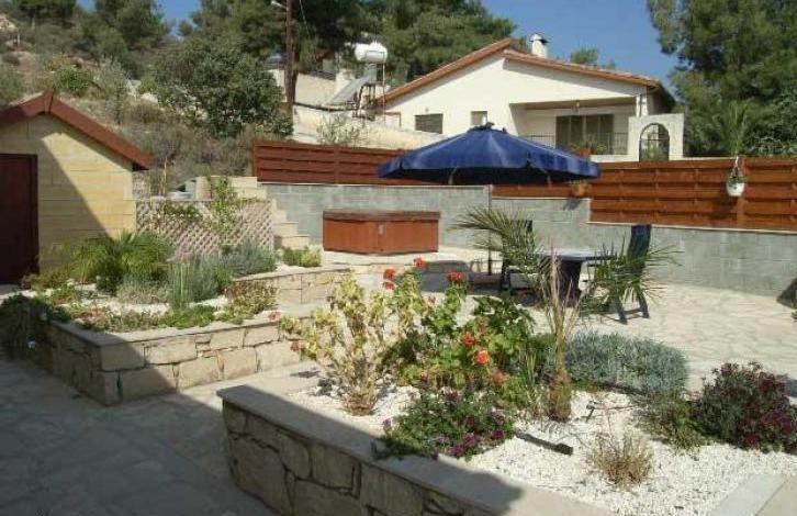 Completed. Individual detached villa with title deeds on a large plot in an elevated position with views over Episkopi and Akrotiri bays and the Salt Lake. Spacious open plan living room with feature fire place, luxury fitted kitchen with separate dining area and family sitting area, guest W. C and a guest bedroom. At first floor level are three double bedrooms, the master with ensite shower room and a family bathroom. The property has central heating and airconditioning,There are paved patios, landscaped gardens and outdoor entertainment area with a Jacuzzi and ample parking. Souni is located 10 minutes from Limassol and 10 minutes from the Curium beach. The property is about 9 years old.