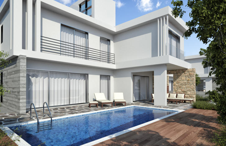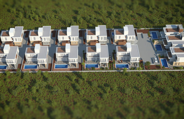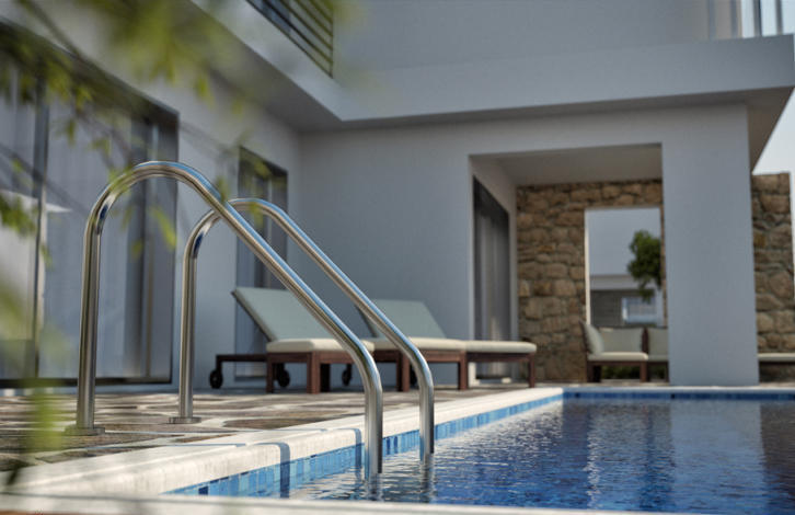Lungomare Villas in Chloraka is a prime and prestigious development of 13 villas, just 150 m from the beach and close to some of the best hotels in the area. This location speaks for itself -opportunities to purchase property in this area are rare. As if the location was not enough, the design of the villas with their geometrically designed upper balconies, their airy and ultra modern living spaces, all complemented by attractive stone and wood clad fascias and on-trend glass balustrades, make them even more desirable to own. Roof terraces will provide an up close view of the sea and offer a generous outdoor living space for you and your family. Nearby is a very pleasant coastal path where you can take in the fresh sea air and explore the small pretty coves and beaches along this stretch of coastline. The villas are built to the highest possible standards and styled with high quality fittings. At the early stage of construction you will be able to choose tiles, kitchen cabinets and other fittings to suit your own taste. A swimming pool is optional but will be handy for a refreshing dip during our long warm summer season. Gardens will be attractively landscaped with plants, small bushes and trees. The villas are suitable for permanent living or holidays and have guaranteed rental potential.
