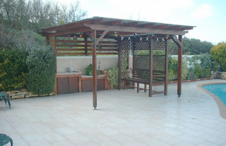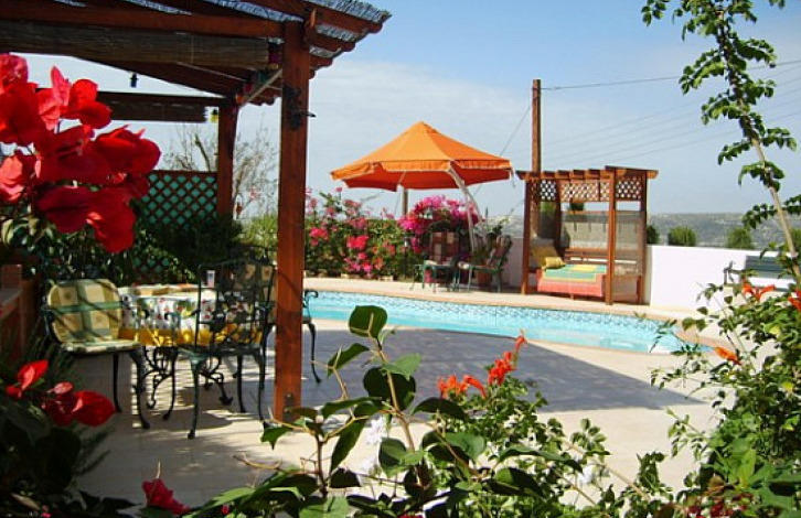 A modern 3 bedroom villa is located in Koili village, from where you can easily walk to the center of the village, a short drive to the main road to Paphos or Polis. The villa is very bright and spacious, there is central heating throughout. The open kitchen is fully equipped and includes all household items. Through the stone archway there is an entrance to the hall with a fireplace. There is a covered wooden gazebo, which is ideal for barbecue. California marble stairs lead to three large bedrooms, one of which with a shower room. All bedrooms have built-in wardrobes and air conditioning. In the presence of pressure water supply, solar panels and satellite systems. The villa is located in a beautiful location surrounded by fields, fruit trees and vines. Title in stock.