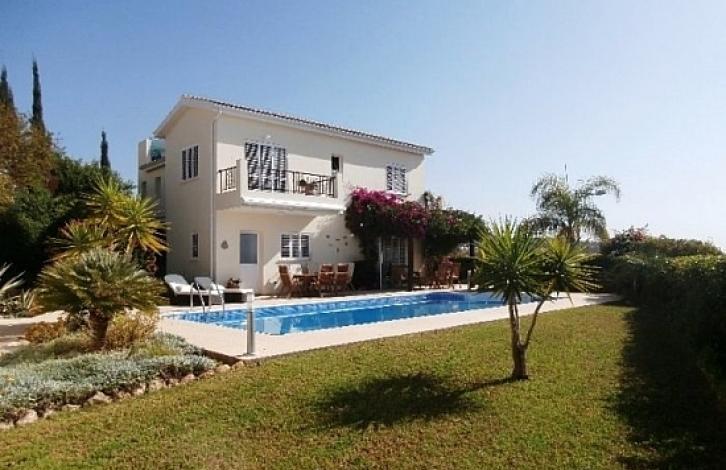 This is an exclusive custom designed immaculate villa on a double plot with excellent unobstructed sea and mountain views. It offers spacious and luxurious accommodation and it's surrounded by beautiful mature landscaped gardens. Pafos, Kissonerga and the Coral bay area. The property includes a detached garage, full central heating, water purifying system, air conditioning in every Room and a sophisticated alarm system. It has also been recently painted externally and the Swimming pool has a new liner. The price includes high quality furniture (both inside and outside), modern Neff and Seimens in the kitchen, granite work surfaces and a marble staircase.