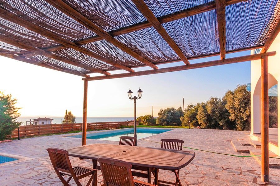 Дом имеет Титул Собственника и имеет индивидуальный доступ к оливковому саду, где больше 40 зрелых оливковых деревьях- с шикарным видом на море, над Акамас, на сад, и на бассейн. Самый лучший закат солнца вы увидите здесь.