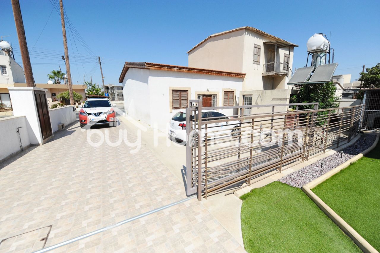 This stunning 4 bedroom detached house sits on a large plot with an older smaller house positioned at the front of it included and is located in Livadia village. The older house could be demolished to make room for a swimming pool or a bigger garden if the new owners would wish to do so. This well maintained house is full of large living areas providing comfort and the fixtures and finishing’s are of high standards. The windows have blinds in between the double glazing and are PVC material for insulation just like the doors. Downstairs we have a separate living room that is fantastic to host guests, another living room with dining area that is open plan with the kitchen, it also boasts a lovely fire place and there is also a kitchenette/ utility room. Upstairs we have the bedrooms (one is a master with en suite), the family bathroom and an area with a kitchen sink, hob and fridge. The loft has been converted to a room and the access has been made permanent via a solid wooden staircase. In general the property has a lot to offer, it’s up to the new owner if they want to keep the smaller house at the front or demolish it to make more space. Viewings by appointment.