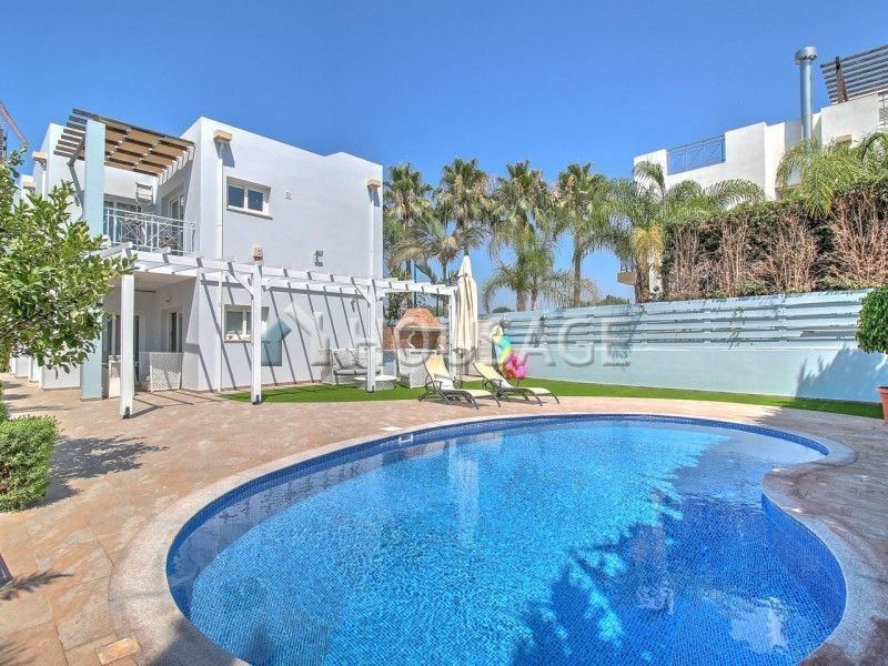 Spacious Villa with 4 bedrooms and 4 bathrooms, 150 metres from the beach. Separate kitchen, open plan living room with access to the pool. Three bedrooms located on the second floor and a fourth on the ground. Central heating, separate Laundry room, storage rooms, sauna. Private pool with garden and fruit trees, automatic irrigation, Playground, barbecue area, covered Parking for two cars. Walking distance are all necessary infrastructure. Title deeds available.