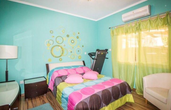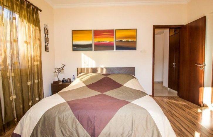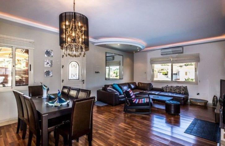 The bungalow consists of a spacious living room with a dining area, 3 bedrooms, bathrooms and an equipped kitchen. Equipped with air conditioning and all necessary household appliances. Has a large swimming pool with a terrace for sunbathing, a landscaped garden and a spacious parking space. Quiet residential area near the beach and city amenities.