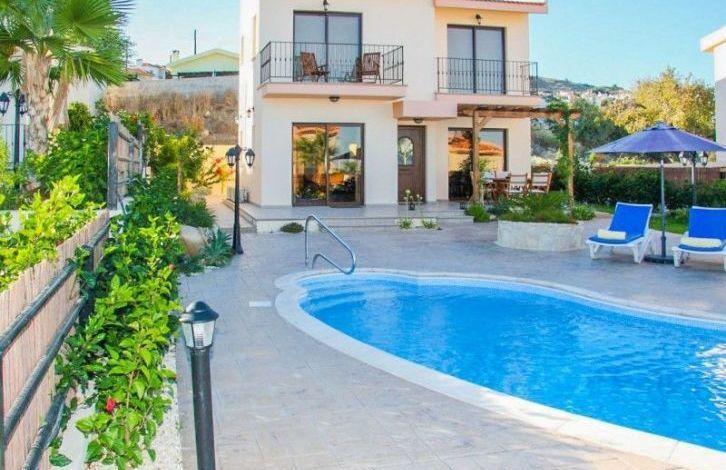 Villa in Pissouri with 3 bedrooms and a private pool, a short drive from the beach of Pissouri Bay. Panoramic view of the sea and mountains. Own garden, swimming pool, barbecue area. Pissouri is one of the most picturesque and hospitable villages in the south-western part of Cyprus. It is located high on the slope of the hills and occupies all its adjacent territory with its vineyards. From here you can see a completely enchanting view of the Mediterranean coast.