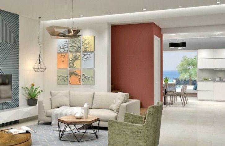 The three bedroom villa is located in a quiet residential area of Germasogeia overlooking the sea, easy access to the highway, 3. 5 kilometers from the beach and 1. 5 kilometers from all amenities such as a supermarket, fish marker, meat market, shops, etc. The total living area is 186. 3 m ^ 2, the plot is 375 m ^ 2 and 58 m ^ 2 of the green zone. On the ground floor there is an open plan kitchen, which is connected to the dining area, a living room, a laundry room and a guest toilet. On the second floor there are three bedrooms, a master bedroom with a bathroom and built-in wardrobes, and one main bathroom. The villa has laminated parquet, two parking spaces, solar panels for hot water, provision for air conditioners, wiring for central heating, optional, pool and roof garden.