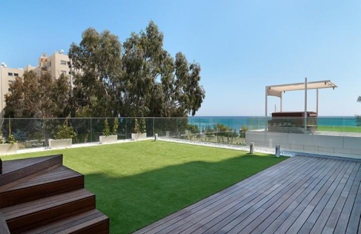 Luxury 3 bedroom garden apartment in an exclusive complex located directly on the seafront in Limassol. Each apartment in the complex reflects the luxurious design, stylish decor, equipped with air conditioning and under floor heating, a fully automated system \"smart house\" and a satellite. The complex offers the infrastructure such as reception, Spa, swimming pools, sauna, Turkish bath, hair salon, gym and tennis court. Great location right on the seafront and within a minutes walk from the town amenities.