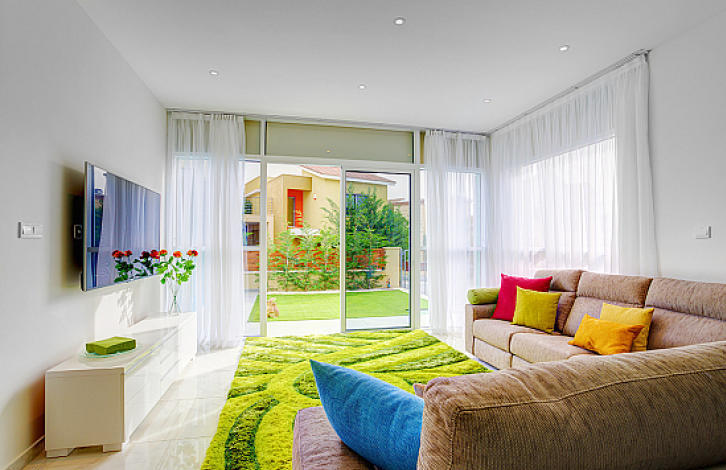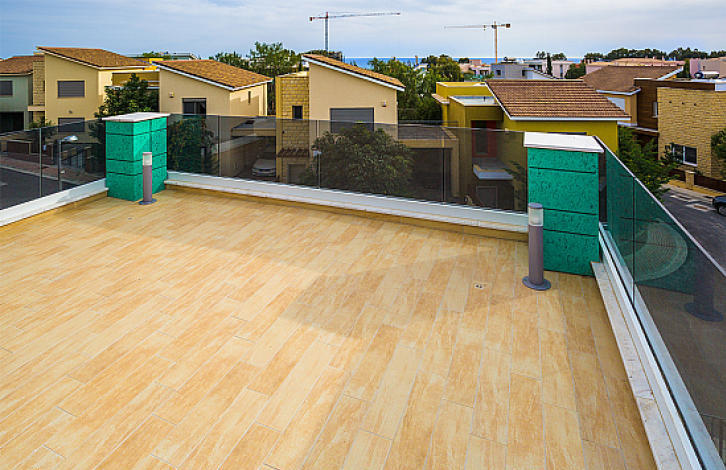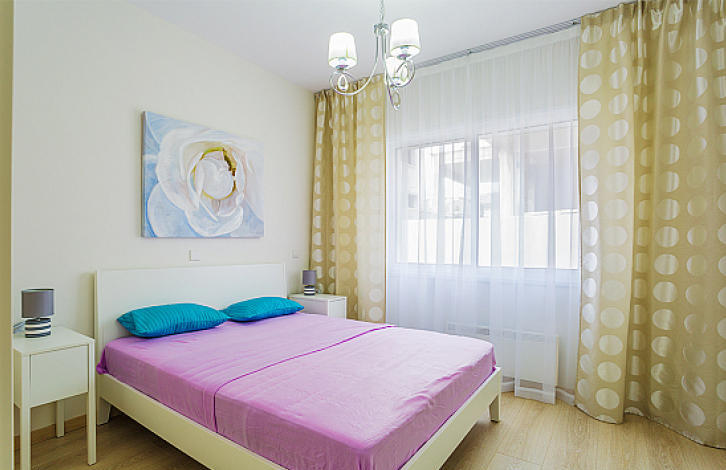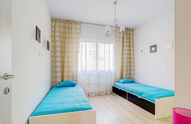 4 Bedroom Villa Coralli The house has 4 bedrooms, 2 bathrooms, guest toilet. In the living room is a huge Italian sofa, which decomposes into a full 2-bedroom bed. Kitchen Scavolini, a complete set of home appliances Miele. Expensive air-conditioners, electric heating. On the site of the house is a swimming pool, a beautiful garden with fruit trees and thuja is organized. There is a panoramic view of the sea from the roof garden. The covered area of the house is approx. 186 m2, uncovered area - approx. 42,5 m2, roof garden - approx. 39 m2, plot - approx. 270 m2. Coralli is an excellent complex by the sea, next to a wonderful sandy beach. In the complex there is a playground, children's playroom, communal pool, gym, sauna, and 24-hour security.