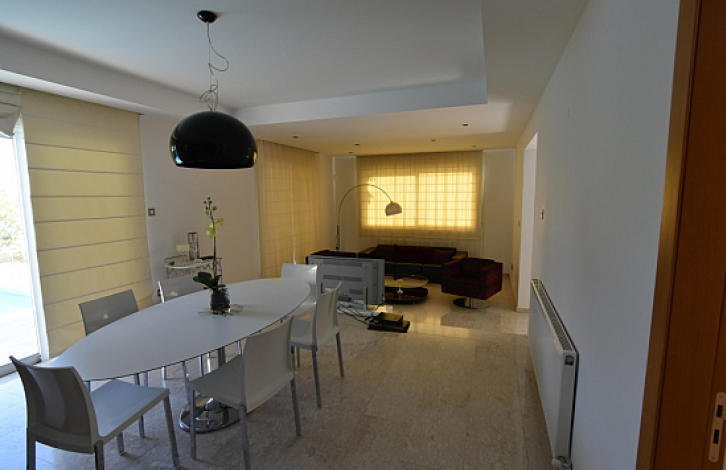 Beautiful villa with 5 bedrooms located in a quiet residential area of Panthea. Specifications: 5 bedrooms, the house is fully furnished with fully equipped kitchen, air conditioning in all rooms, diesel central heating, laundry, garage for 2 cars, private pool, barbecue area. View of the sea.