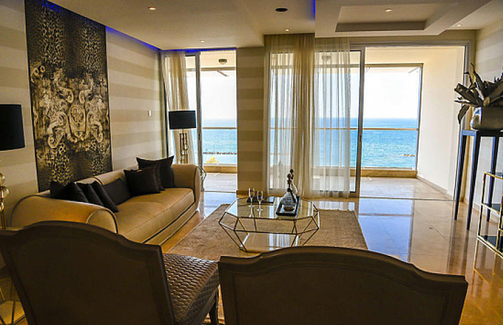 Elite 3-bedroom penthouse with garden on the roof, in a gated complex, located in Agios Tychonas, the area of the city of Limassol. The apartment includes a spacious living room with an equipped kitchen and a dining area, 3 bedrooms, 4 bathrooms and a large veranda with a beautiful panoramic sea view. Offers a luxurious style and stylish decor. The apartment is equipped with air conditioning and central heating. All residents of the complex have access to a common pool, gym and tennis court. There is a Title