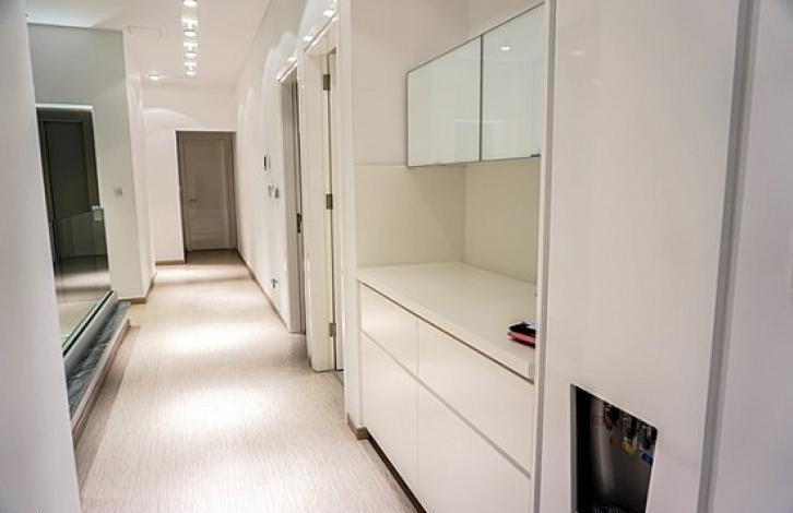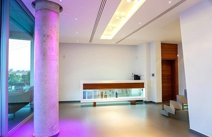Exclusive 4-bedroom villa with stunning direct sea views, located in the Agios Athanasios area of Limassol. The villa consists of 3 levels. The covered area is 450 sq. m. Together with the ground floor. It includes a spacious living and dining area, 4 bedrooms, 3 of them with their own bathrooms, equipped kitchen, elevator, spacious verandas. Offers a luxurious design and stylish decor. Equipped with VRV air conditioning and central heating system, has a place for barbecue, covered parking space for 2 cars, pantry, private pool and landscaped area. Magnificent residential area near the beach and city amenities.