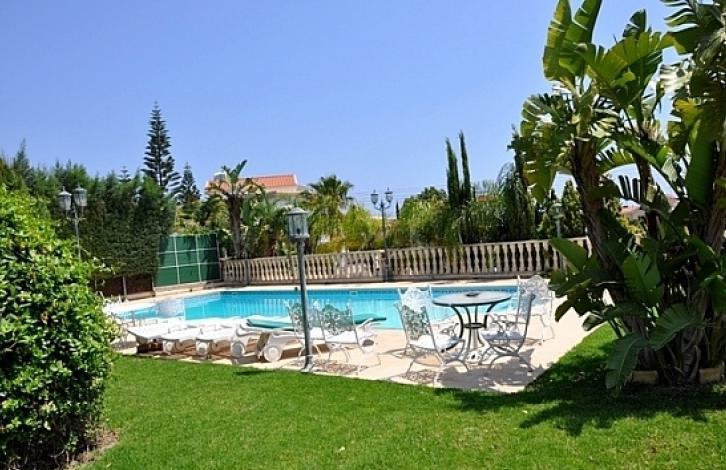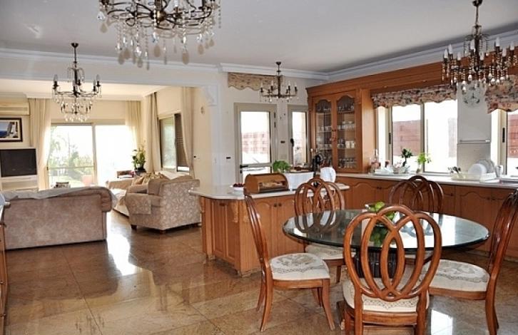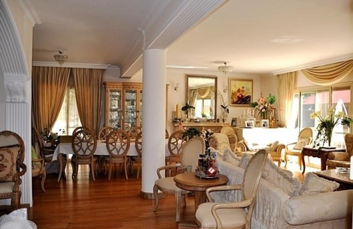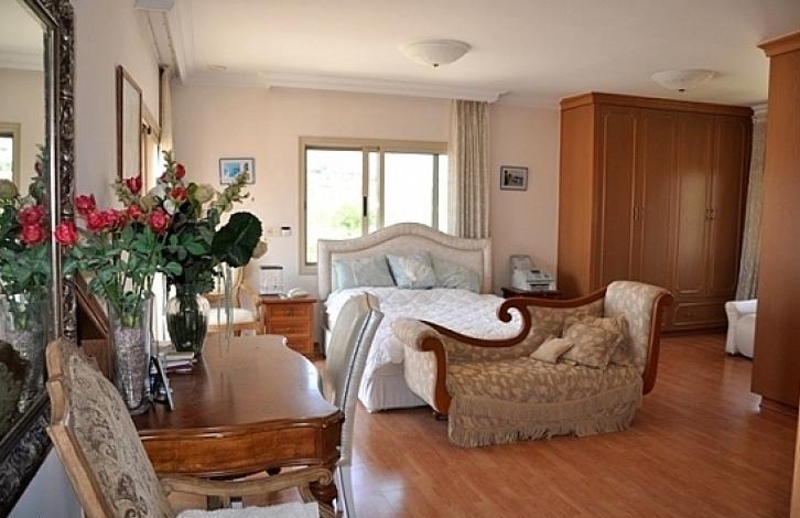 Luxurious 6-bedroom villa, located on a large plot, in the Kalogiri area of the city of Limassol. The house includes a spacious living room, 4 bedrooms on the first floor, 3 of which have their own bathrooms, 1 more bedroom with a loft with a bathroom, 1 maid's room, a jacuzzi, a fitted kitchen and large verandas. The villa is equipped with air conditioning system, double-glazed windows, has 2 fireplaces, private swimming pool, covered parking for 2 cars with electric gates and an open parking, as well as a pantry. Offers panoramic views of the sea and the city. It is close to all necessary amenities. The house is also rented furnished.