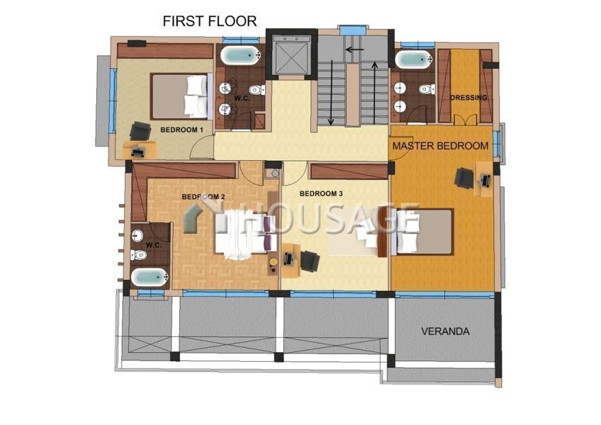 На вилле 6 спальных комнат, 4 из них с персональной ванной.