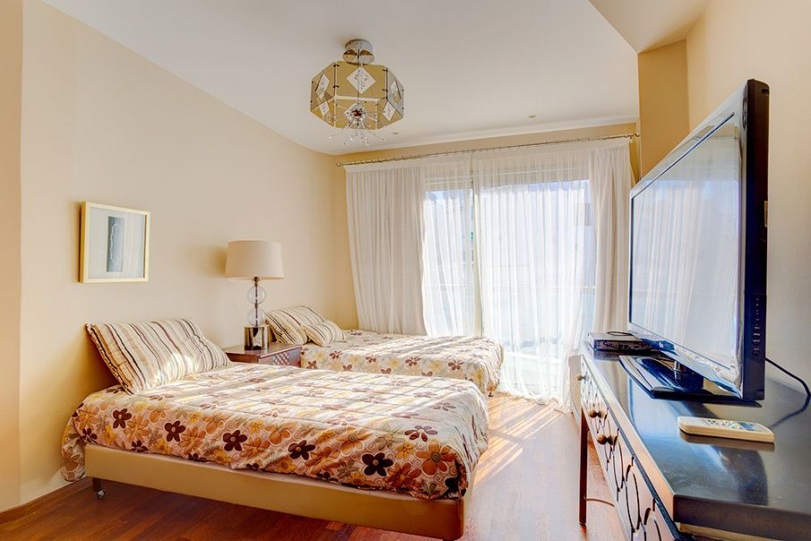 Подходит для размещения 6 человек (в каждой спальне по двухспальный кровати king size).