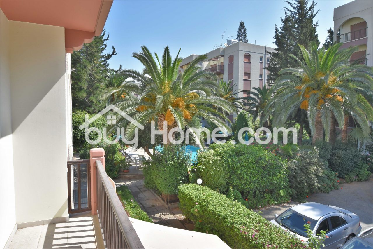 Internally the flat has an open plan kitchen living area with balcony and two bedroom and two bathrooms. The apartment benefits also fro a communal pool and easy access to the beach.