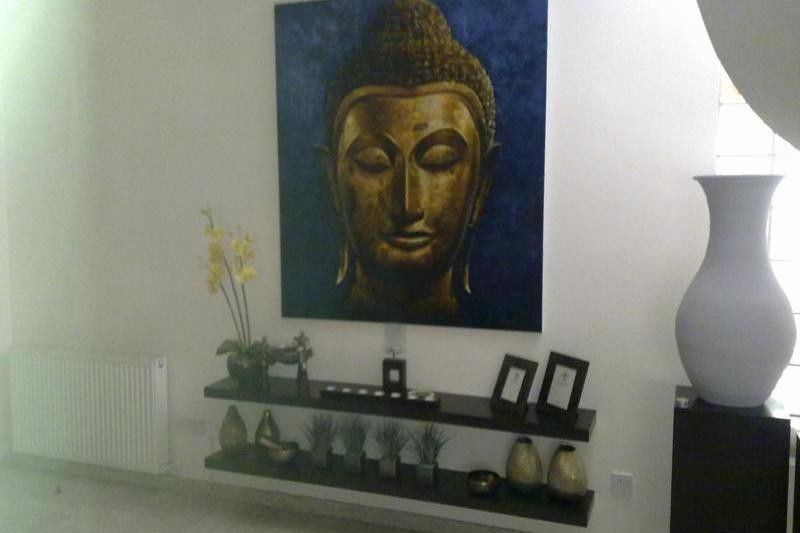 Luxury 3 bedroom house with separate Studio in a residential quiet area, just 400 m from the sea. There is a private pool, beautiful garden, air conditioned, Central heating, garage for 2 cars,within walking distance to the sea. The house is 8 years old.