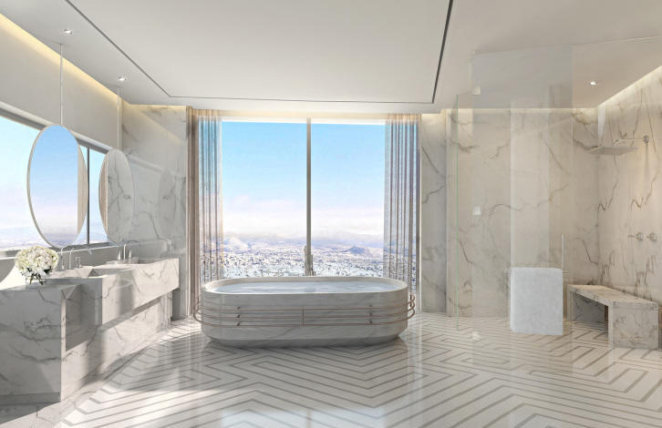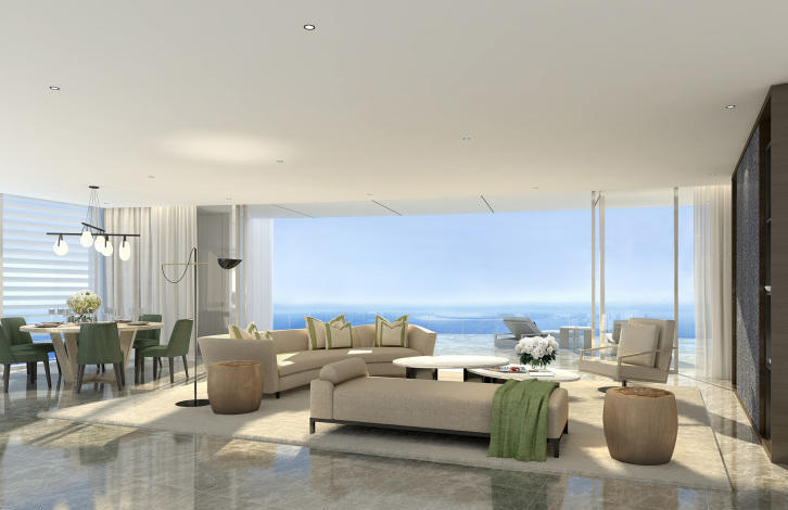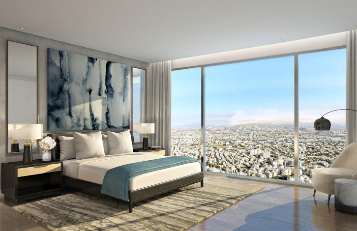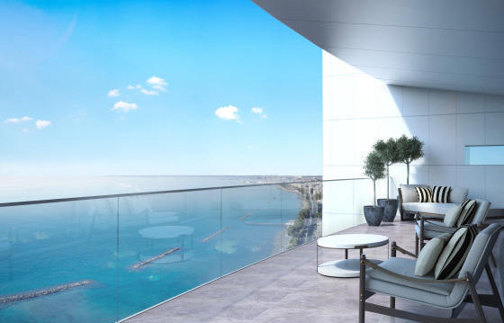 The ONE apartment complex in Limassol is a 37-storey building located on the first coastline of the Mediterranean Sea. The complex has 84 ultra-lux apartments with 2-3 bedrooms on 5-30 floors, 3-4-bedroom duplexes on the 31-34 floors and a 3-storey penthouse on 35-37 floors.