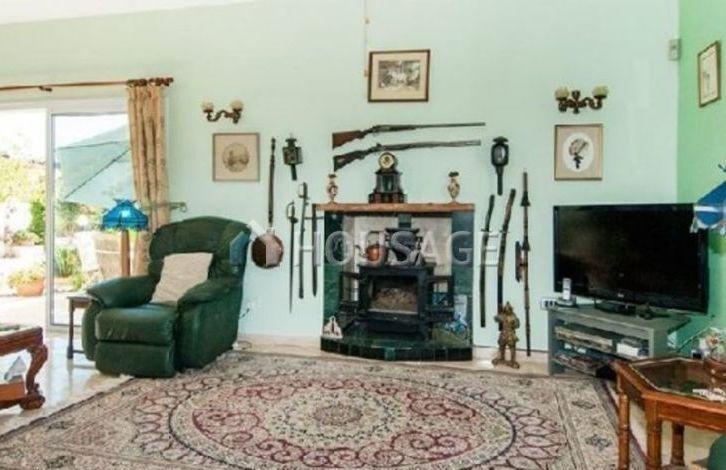 The house at the entrance to the right to a separate kitchen and a guest toilet and a staircase on the left. A door from the hallway leads to a spacious living room with fireplace and dining area. Patio doors open out onto a covered veranda, a heated swimming pool, garden. View of the surroundings, the mountains and the sea breathtaking.