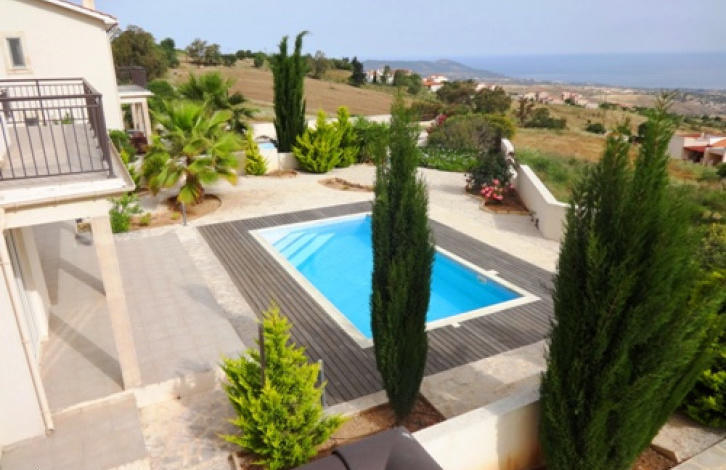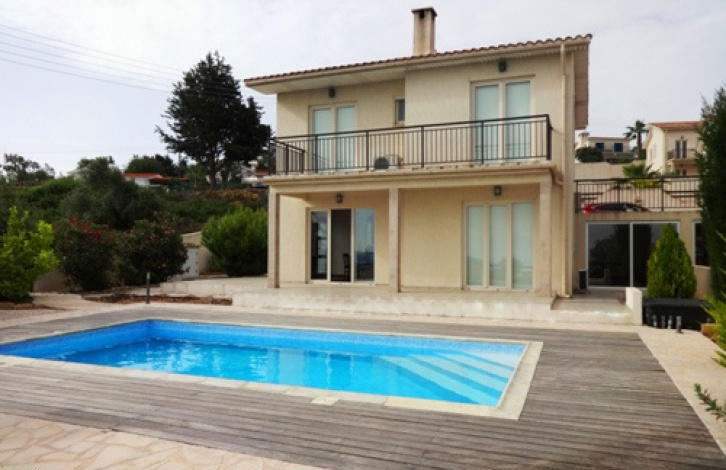 This lovely three bedroom villa is located on a hillside with a magnificent view of the Mediterranean Sea Chrysochous (Golden Masters). Three bedrooms with a family bathroom are located on the second level. On the first level, the open-plan kitchen and living room are connected by arches. The villa was built using modern European construction methods, providing warmth in winter and cool in the summer. There is autonomous heating (electric) floors on the ground floor. A large swimming pool with an innovative system for cleaning salt water. Built-in wardrobes, air conditioning, laminated floors, Italian tiles, solar panels, automatic irrigation system, car parking, barbecue area and additional technical equipment Room, which at any time can be converted into a residential!
