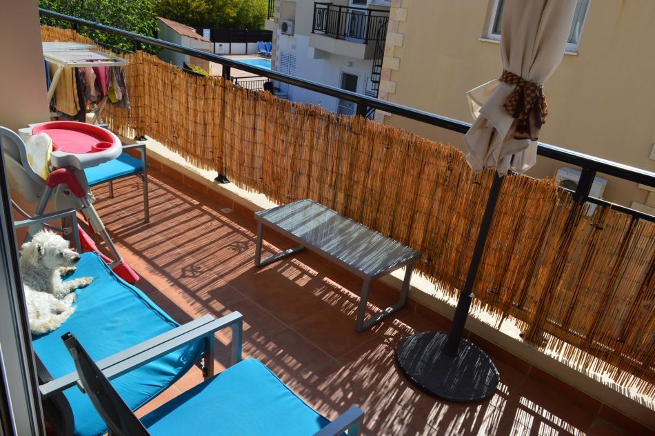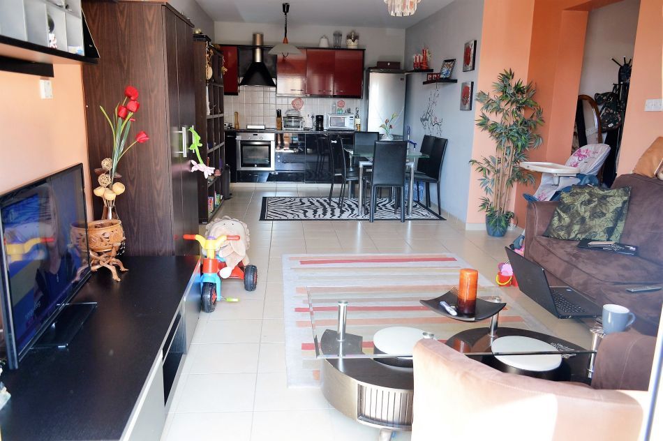 Spacious 1 Bedroom Apartment - universal € 62 000 City: Paphos Area: universal Purpose: Sale object Type: Resale property Type: Apartment Area: 65m2 Bedrooms: 1 Bathrooms: 1 the Title of ownership: Yes Types: the Neighborhood To the sea: 3000m Spacious 1 bedroom apartment located in a small complex area of the universal. Consists of an open plan living room combined with dining room and fully equipped kitchen. There is a large double bedroom with fitted wardrobes in it, and a family bathroom. From the living room and from the bedrooms there is exit to a spacious balcony . Up the stairs You will find yourself on the terrace with panoramic views over fields and surrounding countryside. In the courtyard there is a swimming pool with area for relaxation.