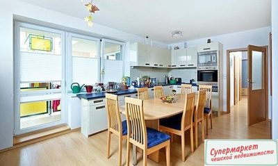 Просторная, со вкусом оснащенная квартира 4 + кк, площадью 110 м2, включая балкон и кладовую в подвале. Планировка - 3 отдельные комнаты (19, 12 и 12 м2), гостиная (33 м2) с современной полностью оборудованной кухней. Большим преимуществом является угловой балкон (11 м2) с юго-восточной ориентацией, соединяющий гостиную и спальню. Квартира предлагается частично меблированной, с большим количеством встроенных шкафов, изготовленными на заказ спальнями, кладовой со стеллажами.