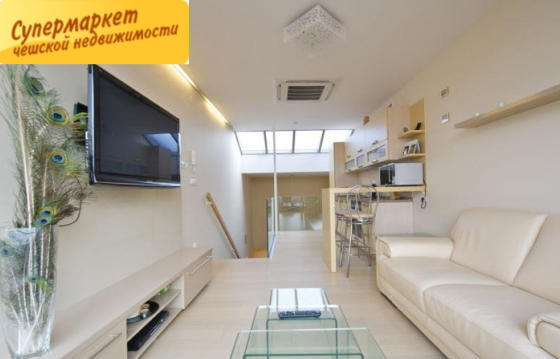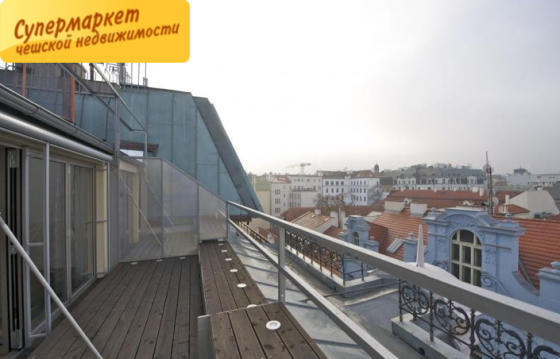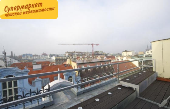 We bring to your attention an apartment of 2 + kk with an area of 64 m2 with a terrace of 15 m2. The apartment is located on the top floor of a house in Nekazanka street. From the terrace there is a beautiful panoramic view of the Prague Castle and the Old Town. The apartment has several levels: on the first there is a spacious entrance hall with a large wardrobe, on the second - a bedroom, a bathroom, a dressing room, on the third there is a spacious living room with a kitchen. The decoration uses unique interior design details, extra-class materials.