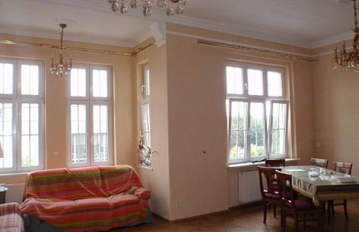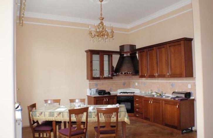 Квартира 4+1 находится на 3 этаже кирпичного дома без лифта, в деловом центре города, по улице Западни. Общая площадь квартиры составляет 130 м2. Квартира полностью после ремонта. Высота потолков-4м. В цену и метраж квартиры входят 2 гардеробных, 2 туалетных помещения и подвал. Отопление электрическое и котел. Окна пластиковые, новые. Квартира частично меблирована. Квартира очень светлая.