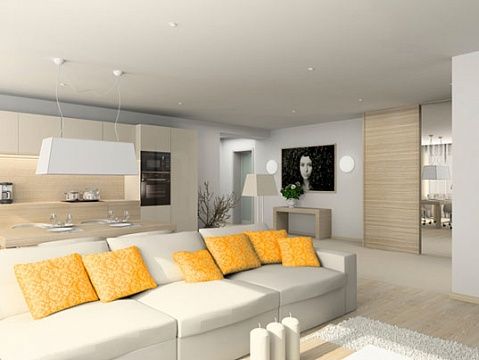 Трехкомнатные квартиры 3+кк в этом доме могут быть от 71 до 90 м2. В каждой квартире есть по крайней мере один удобный балкон-терраса (до 10 м2), на который выходят большие французские окна гостиной (27-36 м2) и одной из спален (12-18 м2). Две просторные ванные комнаты (5-7 м2), есть техническая комната (под стиральную машину или кладовую). Квартиры качественно отделаны: на полу в комнатах и прихожей – ламинат (на выбор клиента несколько вариантов оттенков), керамическая плитка – в ванных комнатах и туалете, красивая сантехника, на окнах деревянные стеклопакеты. Квартиры оборудованы присоединениями к телефонной сети, Интернету, телевизионной антенне. За доплату можно приобрести парковочное место в подземном гараже и кладовую.