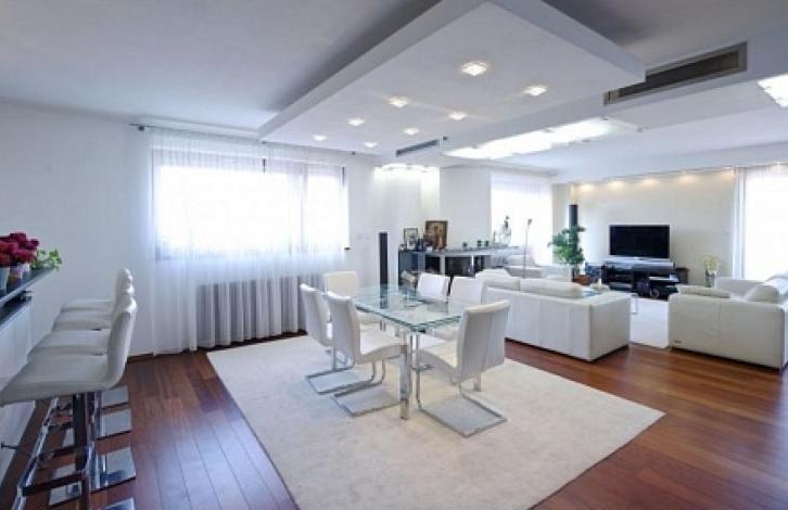 В квартире выложены паркетные полы, плитка в ванных комнатах, подвесные потолки. Пол с подогревом. Цена включает в себя гараж на 3 места.