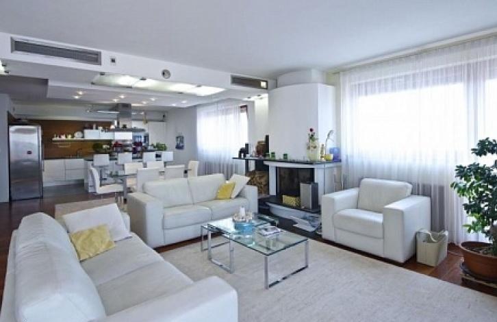 В квартире гостиная с камином и полностью оборудованная кухня с обеденной зоной и выходом на большой балкон, 3 спальни , гардеробная, 2 ванные комнаты и отдельный туалет. Лестница ведет на просторную террасу на крыше, с удобными креслами и небольшой кухней с барбекю.