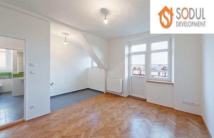 В тихой части Праги 2, рядом с парком Фолиманка располагается прекрасная квартира с планировкой 3+кк площадью 62,1 кв. м (включая балкон 4 кв. м и погреб 2,5 кв. м) и находится на 4 этаже виллы с садом.